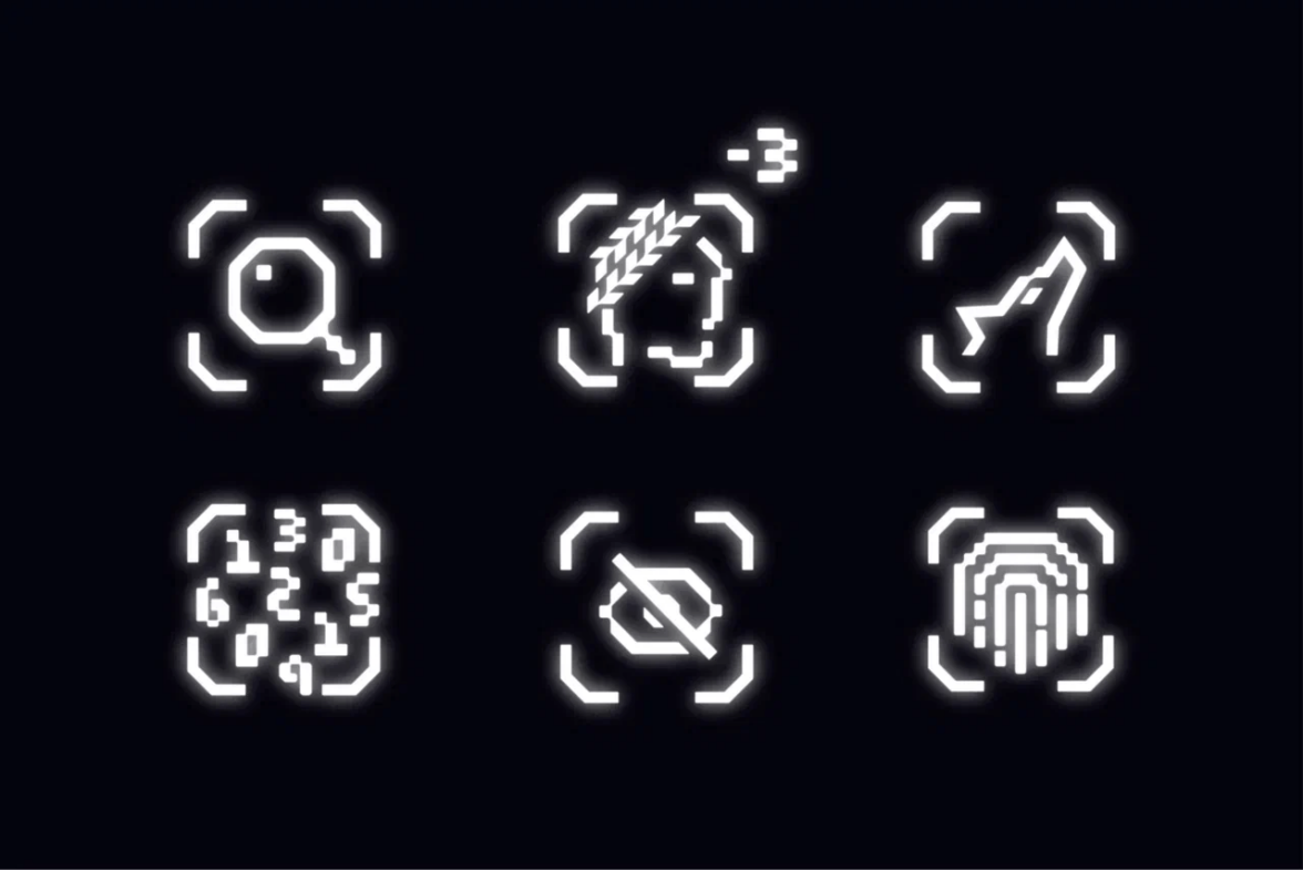 Детективную тему мы решили совместить с лаконичной IT-эстетикой через технологичные пиктограммы и иконки.