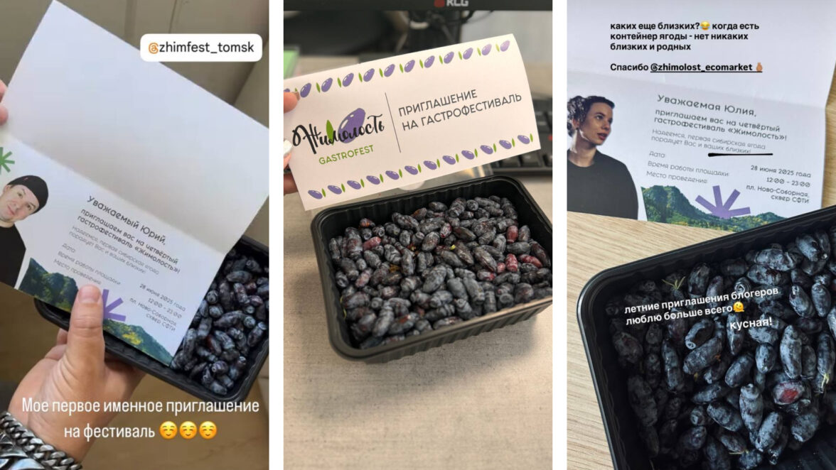 Как привлекали блогеров? Мы пошли нативным, тёплым путём — никакой агрессивной рекламы. Вместо этого: подготовили персонализированную рассылку с приглашением на фестиваль; отправили блогерам фирменные коробочки с жимолостью — чтобы они первыми попробовали сезонную сибирскую ягоду; положили к каждой коробочке открытку с персональным приглашением.