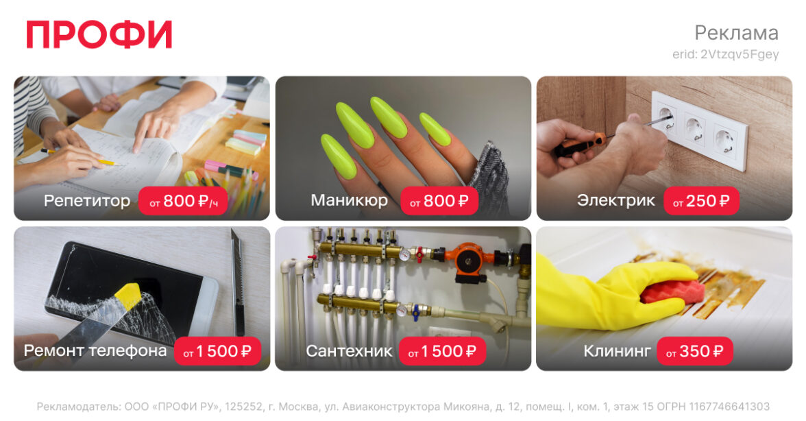 В целом спрос на услуги по ремонтным работам устойчив во многих регионах и не показывает резкого спада на протяжении всего года. Это позволяет таким креативам показывать стабильно высокий процент просмотров.Ролик, обыгрывающий переписку двух пользователей с советом «найти профи на Профи.ру», точно попал в боль аудитории и продемонстрировал высокий CTR!
