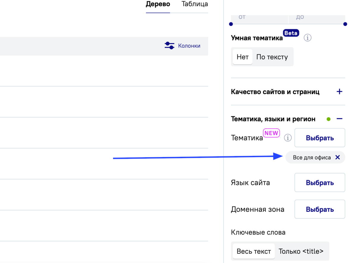 В системе LinksSape есть алгоритм, который автоматически определяет тематическую нишу любого сайта. Если вам нужны ссылки с площадок определенной тематики, например, «Все для офиса» — достаточно указать ее в фильтрах поиска.