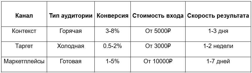 немедленных продаж и сбора данных о целевой аудитории. 20–30% направьте на SEO и контент для формирования органической видимости. Оставшиеся 10% инвестируйте в тестирование новых каналов — может быть, в вашей нише неожиданно хорошо сработает Telegram Ads или крауд-маркетинг.