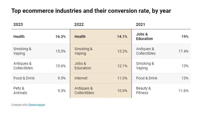 В 2023 году фармацевтическая индустрия оказалась наиболее эффективной. После нее следовали антиквариат и предметы коллекционирования, продукты питания и напитки, а также товары для животных.