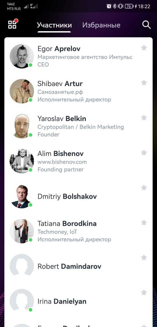 Каждому можно было заполнить свой профиль в приложении, куда мог зайти любой участник, посмотреть, чем занимаются его коллеги и написать сообщение.