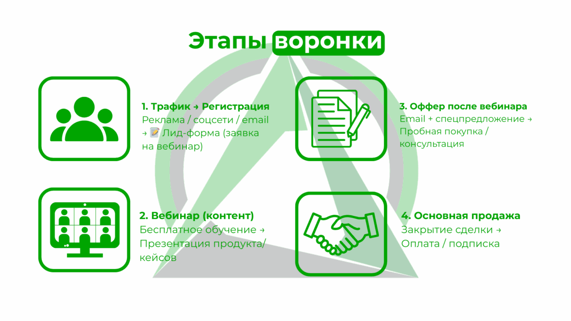 Вебинар — лучший способ за час превратить холодную аудиторию в «прогретую». Вы делитесь концентрированной пользой, показываете свою экспертизу вживую и в конце делаете предложение (например, на бесплатную консультацию).