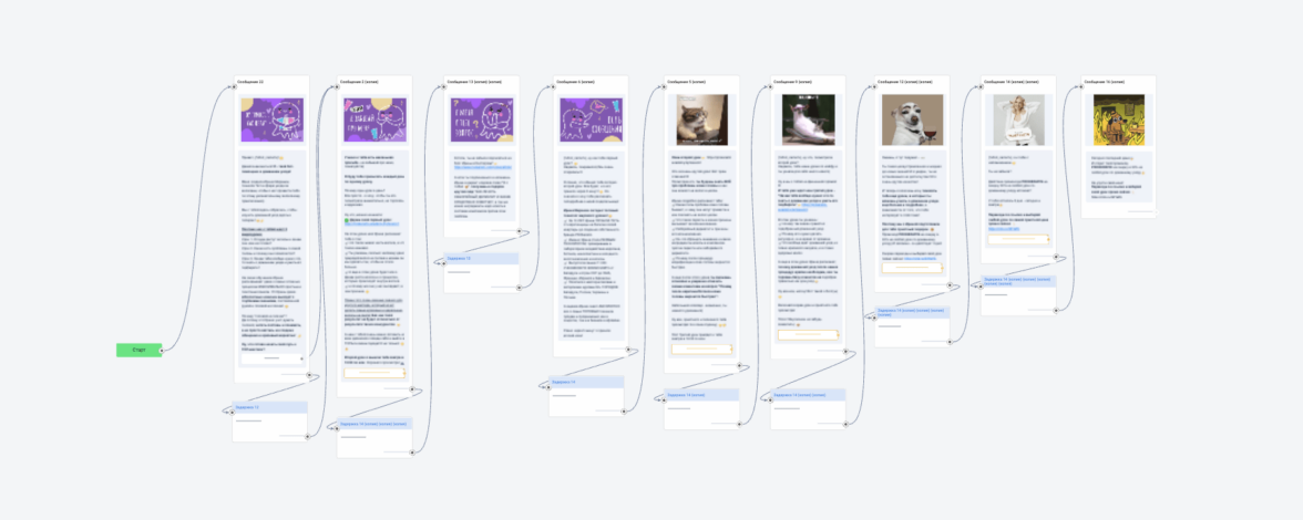 *Нужно продумать цепочку из сообщений, которая будет удерживать интерес пользователя и прогревать к покупке основного продукта.