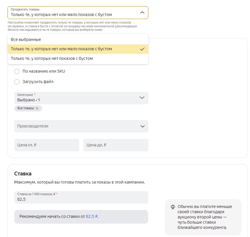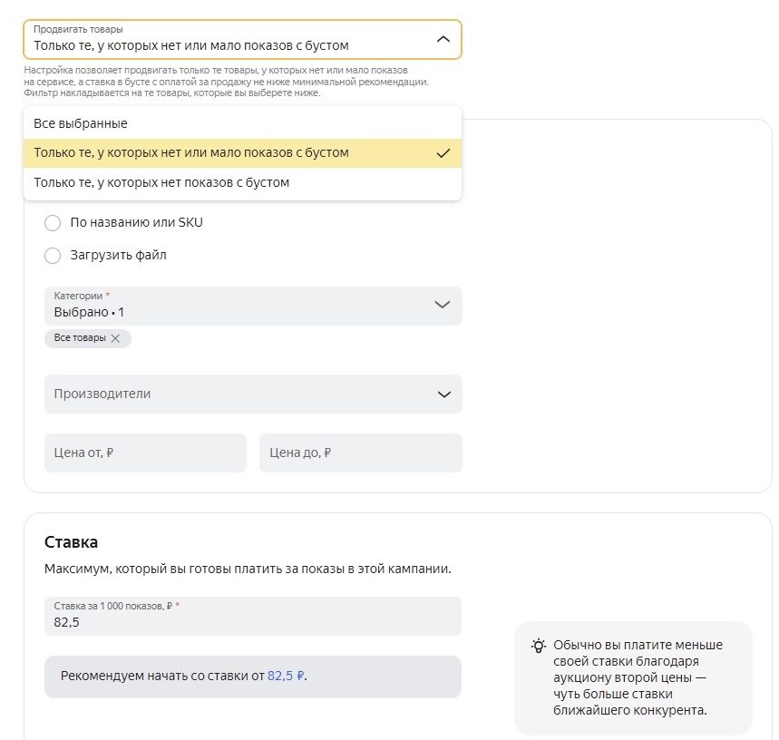 При этом Буст показов усиливает работу буста продаж, который остается основным инструментом продвижения, а не заменяет его.