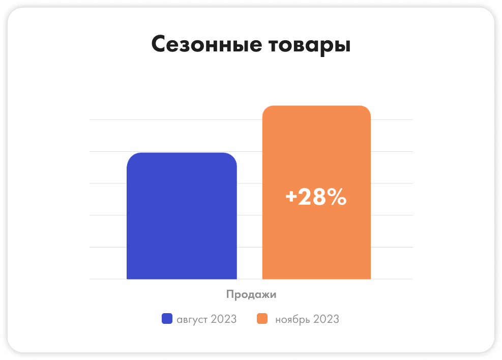 Выставляли максимальные ставки в дни с потенциально высокими продажами: 11 ноября, Черную пятницу, длинные выходные. В ноябре с помощью повышенных ставок в скидочные дни мы увеличили продажи почти в 2 раза.
