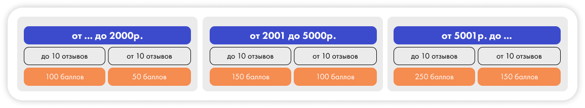 Отзывы за баллы. По данным Маркета, если у товара есть хотя бы 10 положительных отзывов, его покупают до 50% чаще. Мы хотели простимулировать продажи дорогих товаров со стоимостью выше 5000 рублей, у которых мало отзывов. За их заказ дарили 250 бонусов Плюса. В результате количество заказов товаров с стоимостью от 5001 рублей увеличилось в 2,7 раза за два месяца.