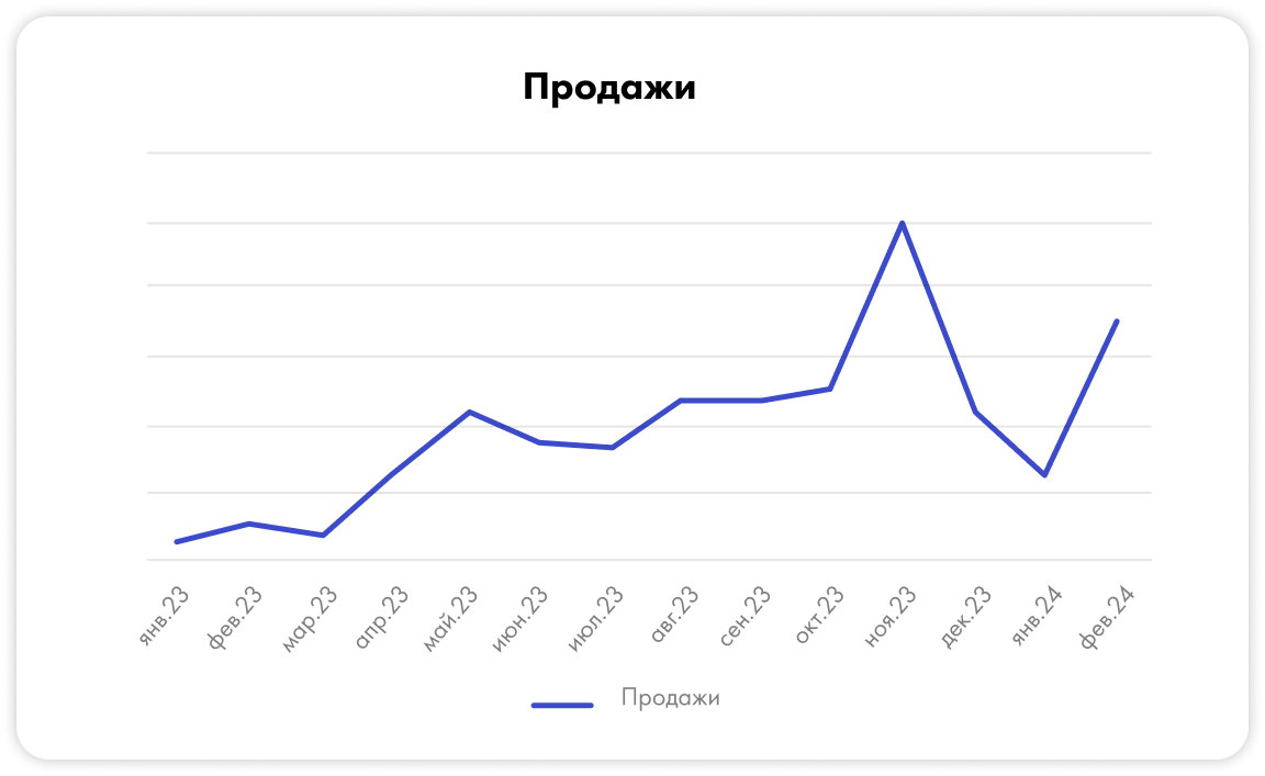 В летний период, а также с января по декабрь продажи просели из-за сезонности. Пик продаж пришелся на ноябрь, в этот месяц Маркет запускает большие акции и скидки.