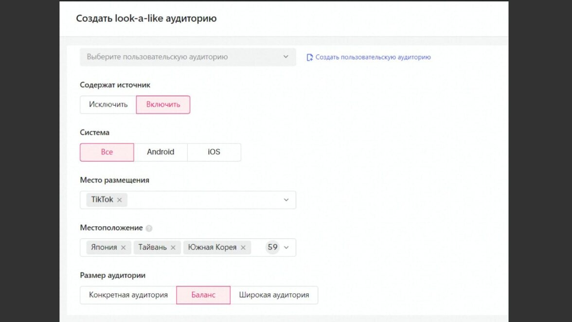 Здесь же указываются места размещений. Рекламу можно показывать только в TikTok или на других ресурсах — там она будет показана в формате баннеров.