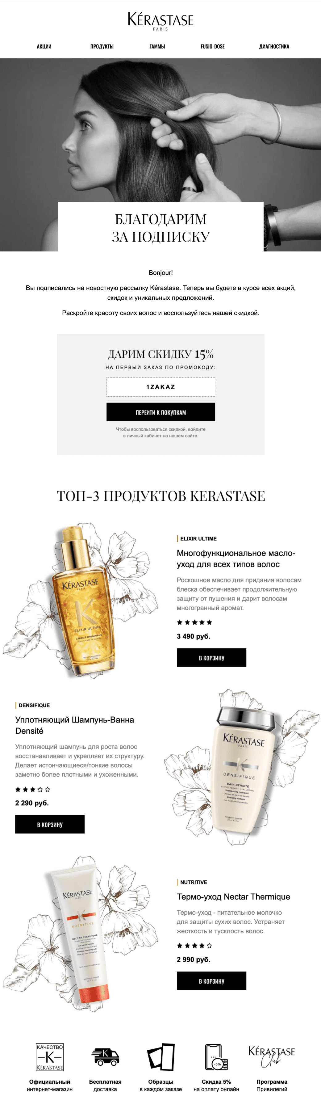 Именно так в одном из писем велком-цепочки поступает Kérastase: