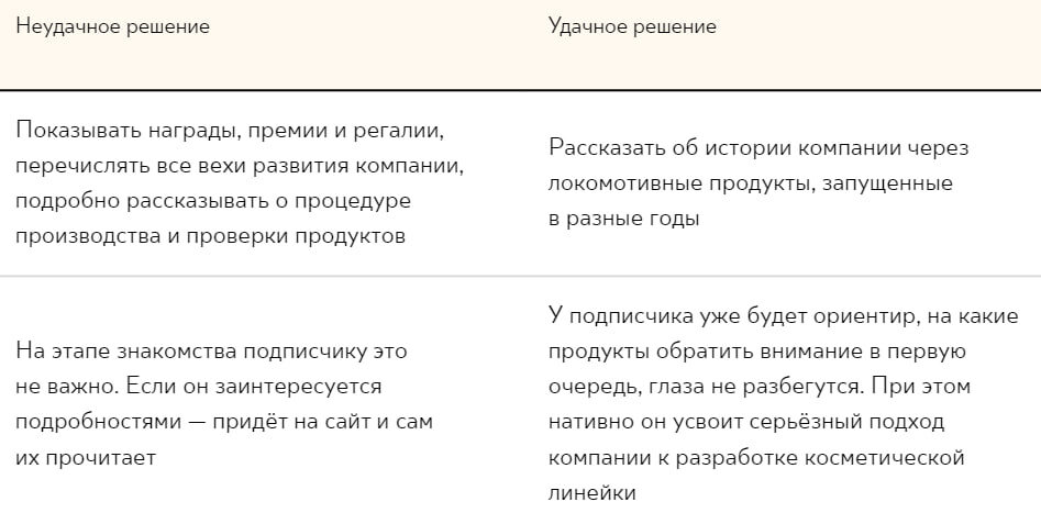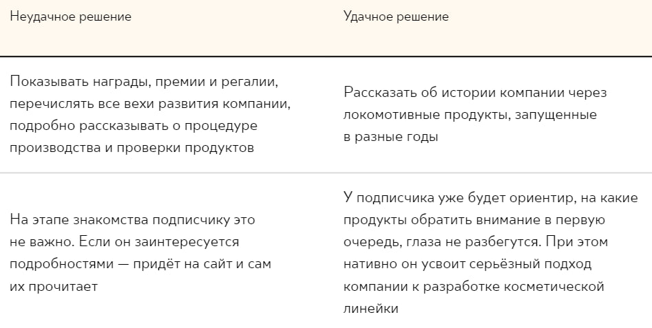 Бренду косметики важно создать образ экспертной компании с внушительной историей и безупречной репутацией: подчеркнуть опыт, научный подход, строгие клинические исследования.