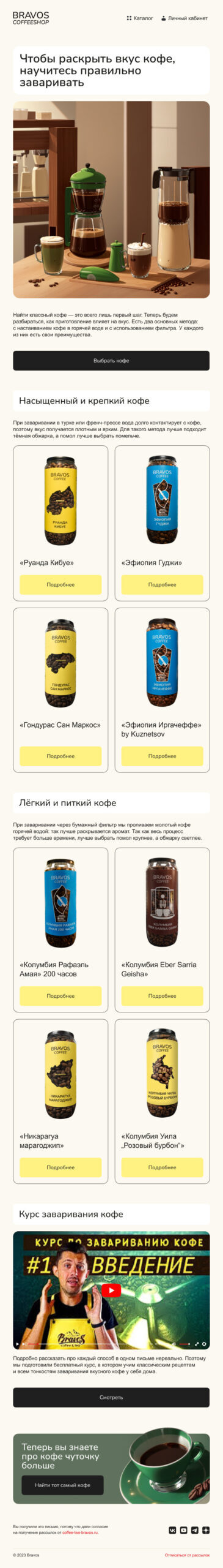 Магазин кофе и чая Bravos предлагает в велкоме топовые напитки для знакомства с кофе: