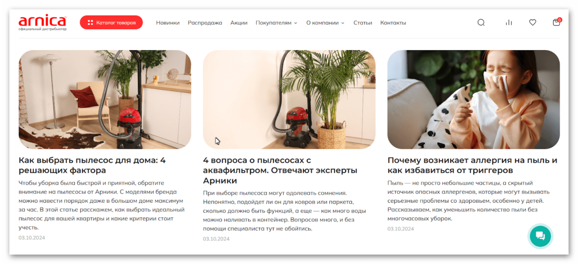 Кажется, что ниша контент-маркетинга в бытовой технике занята крупными брендами типа Samsung и LG. У неизвестного бренда мало шансов пробиться. Но мы взялись за эту задачу вместе с отделом маркетинга компании. Теперь пылесосы ARNICA продают крупные сетевые магазины бытовой техники. А число покупателей растет.