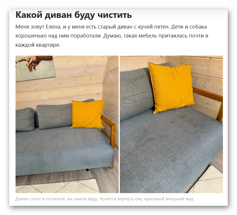 А вот мой любимый формат — юзкейс. Это статья от первого лица. В ней автор описывает свой опыт использования продукта — например пылесоса Arnica Hydra Rain Plus. Внутри много фото, подробное описание всех действий, сравнение «до» и «после». Читатель своими глазами видит результат — такие статьи легко читать, и уровень доверия к ним выше.