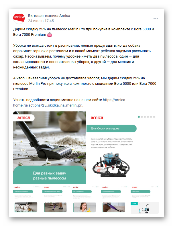 Мы тоже сначала хотели идти в Телеграм, но вовремя одумались: зачем усложнять? ARNICA ведет сообщество во Вконтакте с 2016 года. Там уже 16 тысяч подписчиков. Мы просто немного изменили формат постов — сделали ставку на визуал: