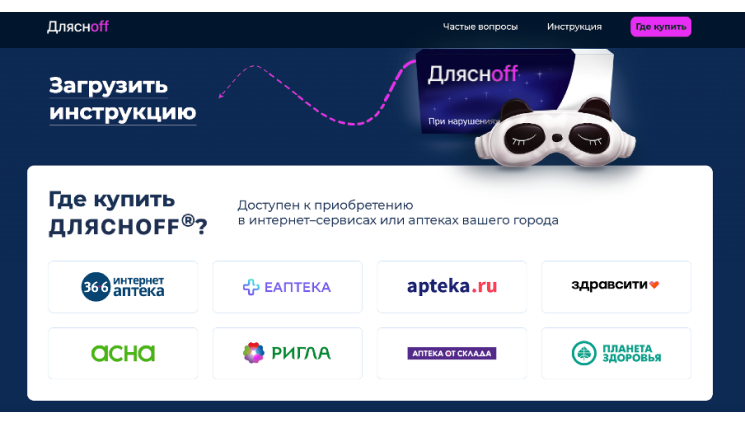 3. Лендинг — подробная информация о препарате и возможность заказа через одну из аптек.