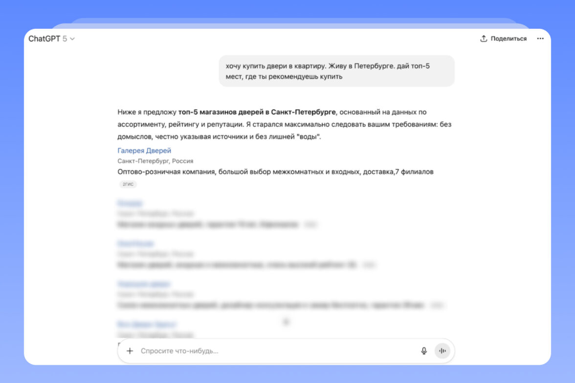 выбор источников ограничен: ChatGPT даёт 3-5 ссылок, поэтому конкуренция за попадание в список выше, чем в органике