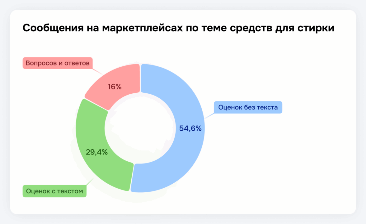 На основных маркетплейсах есть возможность не только оставлять оценку товару, но и задавать вопросы продавцу (у продавцов, соответственно, есть возможность отвечать на комментарии). Такие сообщения могут занимать 10–20% от общего числа сообщений о товарах на платформе, включая оценки без текста.