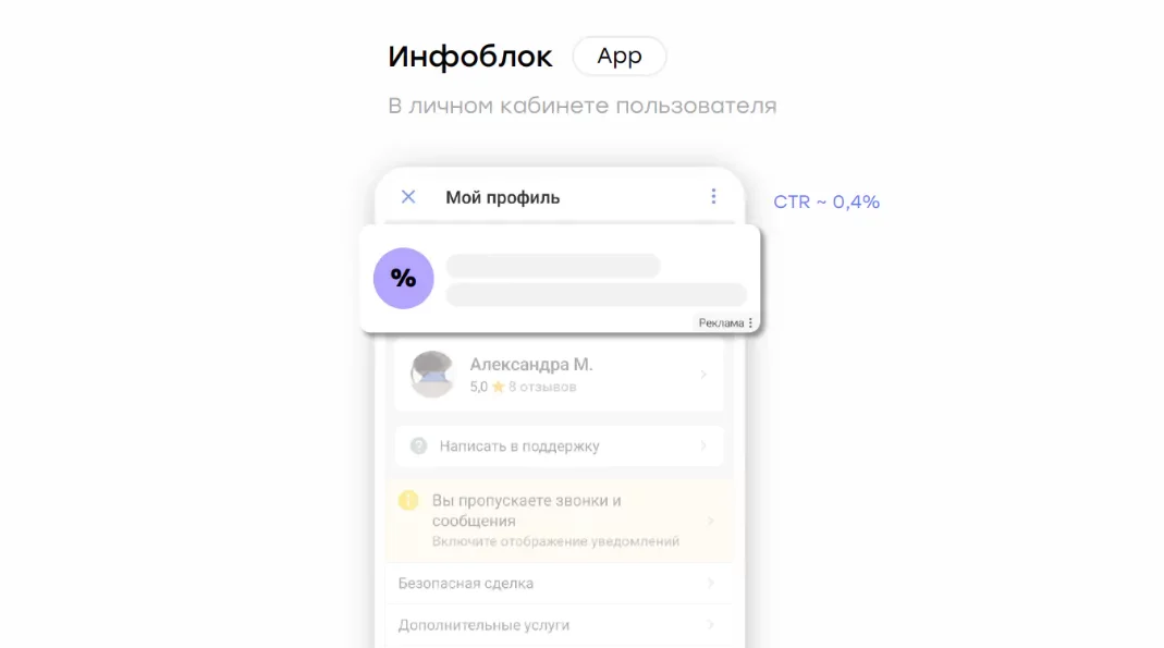 Инфоблоки в кабинетах пользователей. Реклама показывается сразу после входа в аккаунт.