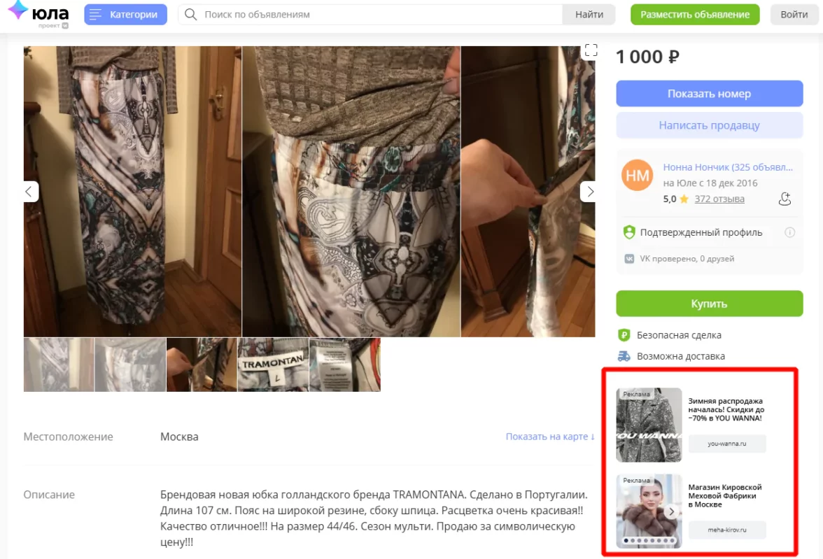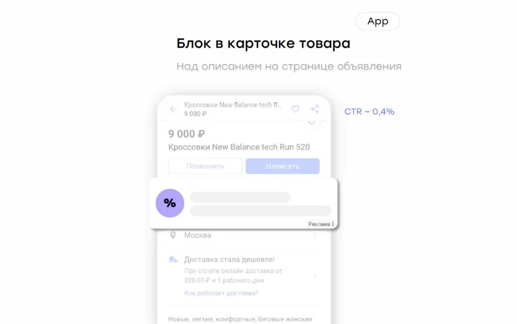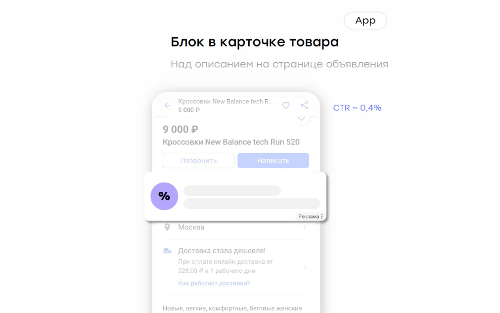 Рекламные блоки в карточках товаров. Встроенная в объявления реклама помогает обратиться к целевой аудитории напрямую.
