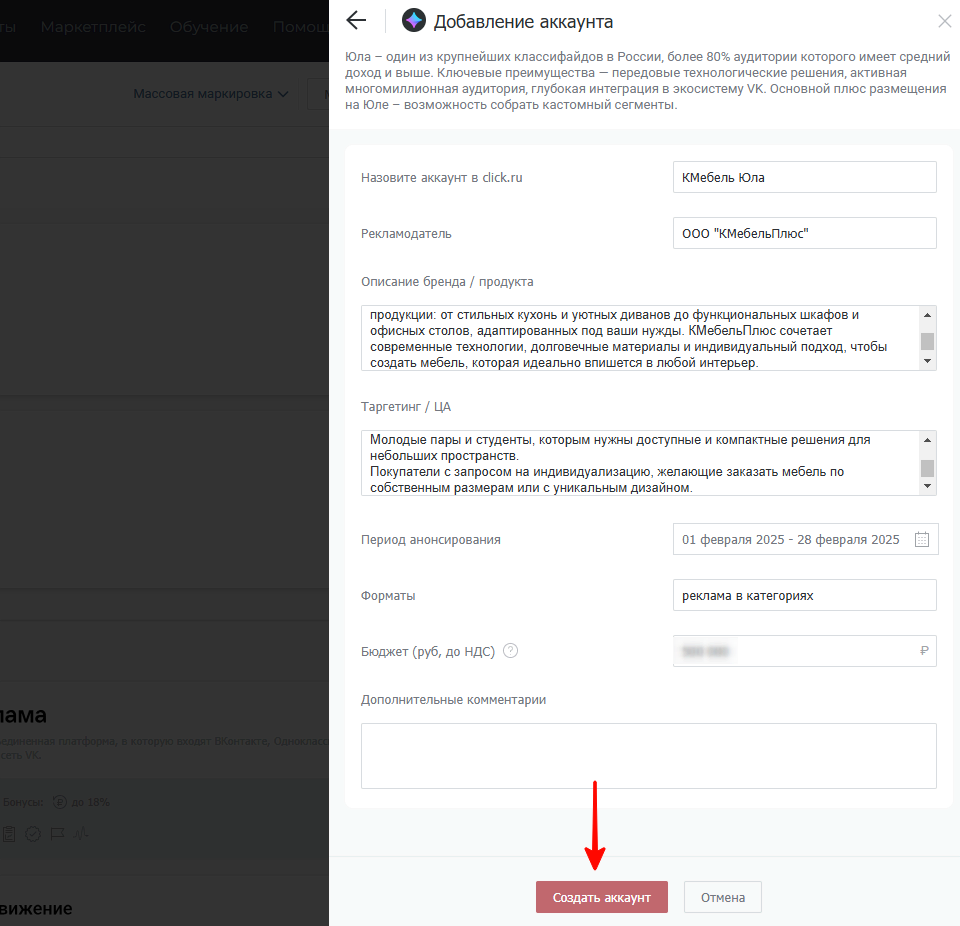 Делимся пошаговой инструкцией, как подключить аккаунт на Юле в click.ru.