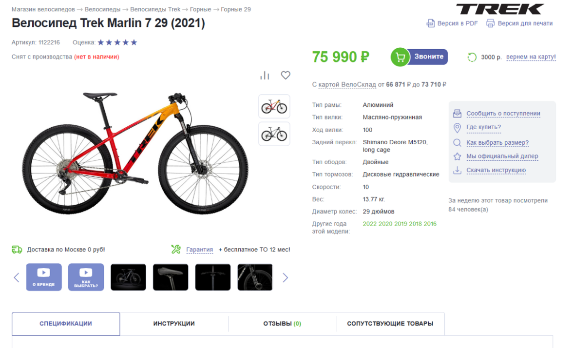 Улучшаем страницу карточки товара «Велосипед Trek Marlin 7»: