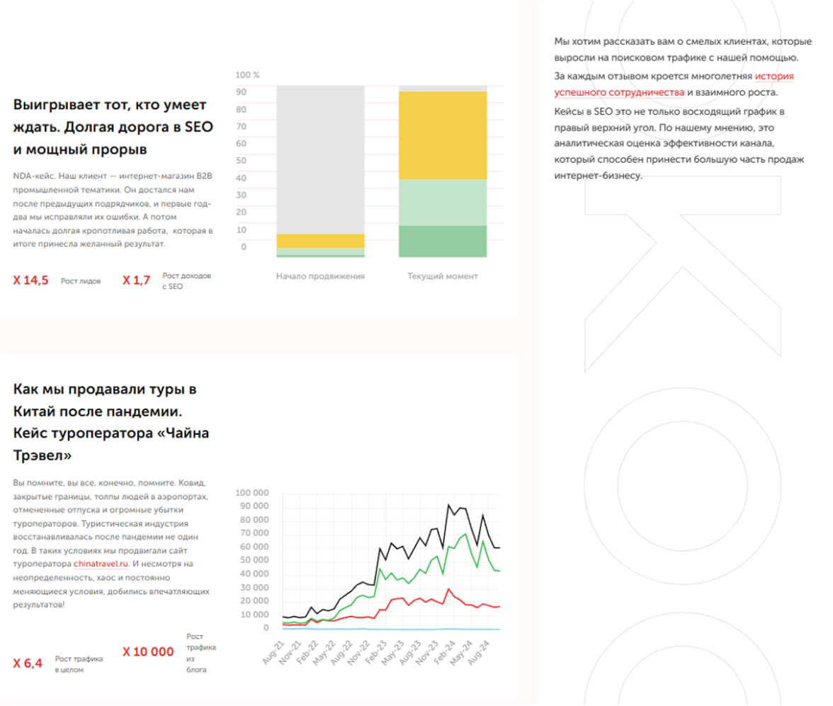 Краткие описания кейсов на странице услуги — хороший пример