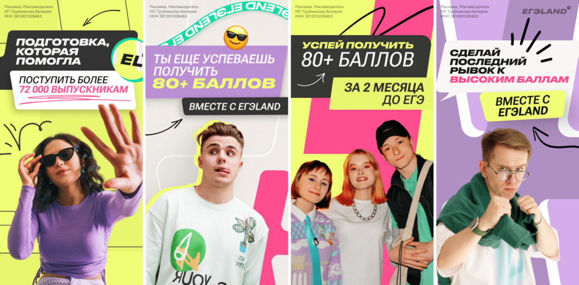 Тестовая кампания стартовала в разгар сезонного спроса — за два месяца до ЕГЭ. В оферах отразили близость экзамена и подготовку к поступлению
