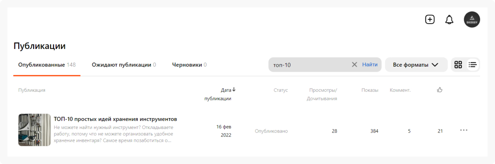 Два месяца двигались по тому же принципу: пишем уникальную SEO-шную полезную статью на сайт, рерайтим и отправляем в Дзен. Затем начали разбавлять контент видео материалами, которые монтировали и загружали изначально на YouTube. А потом ещё плюсом пошли кейсы в формате постов с небольшими текстами и фотографиями.