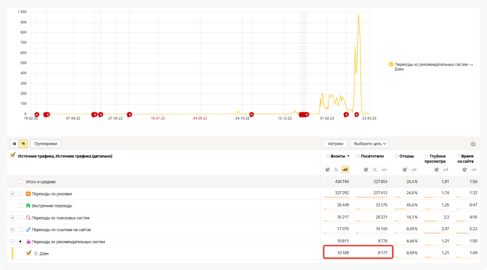 В итоге, первая реформа дала следующие результаты. Во-первых, стало больше рекомендованных показов от Дзена. Во-вторых, увеличился показатель по дочитываниям. Есть переходы на сайт из Дзена. Значит, направление было выбрано правильно.