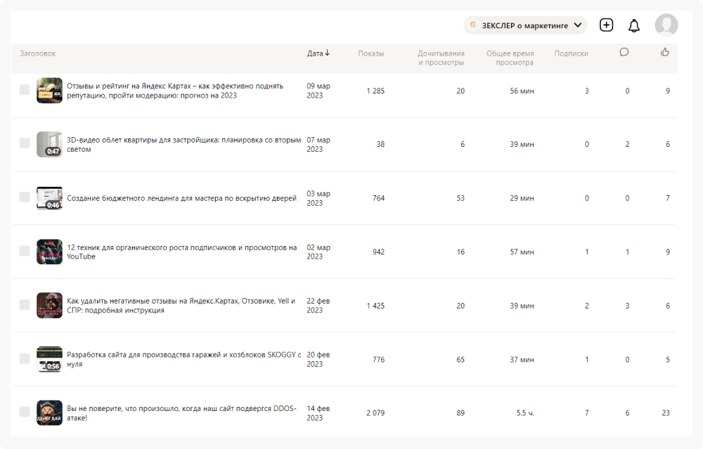 И, опять же, стоит заметить важную вещь: мы не делаем специальный контент под Дзен. Мы туда добавляем всё то, что делаем для сайта (в первую очередь) и для Ютуба. То есть это всё дублирование готового материала для аудитории на Дзене. Ведение канала не требует колоссальных усилий, а просмотры набираются, подписчики растут.