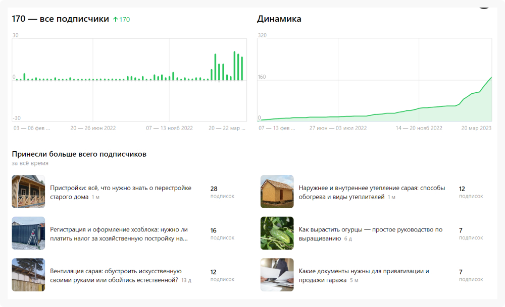 В итоге: огурчики в числе лучших статей, которые привели на канал новых подписчиков.
