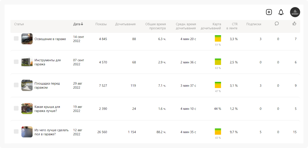 Огуречная реформа. Возвращаемся к статьям, к Реформе 3. Она ещё в процессе, но первые шаги (и весьма успешные) уже предприняты. Так как SKOGGY делает хозблоки и гаражи для дачи и частных домов, мы можем писать околоогородные, ландшафтные и прочие статьи. Запуск решили сделать как раз к началу дачного сезона. Первую статью выпустили про обустройство террасы и она насобирала 62 лайка и 1 451 дочитывание.