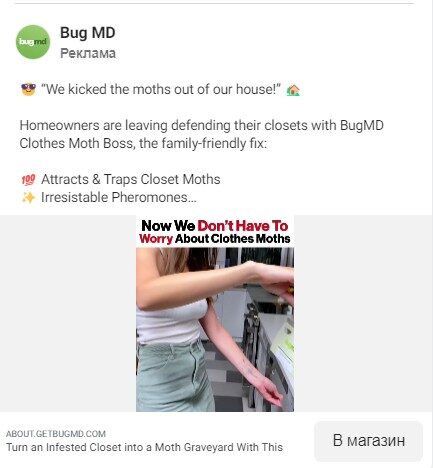 2. Активация проблемы — раскрытие проблемы. В нашем случае это была проблема с насекомыми, которые заполняют дома и мешают жить, проводить время с семьей. И только после этого шел рассказ о продукте, где подсвечивались его УТП — так пользователя стимулировали к покупке.