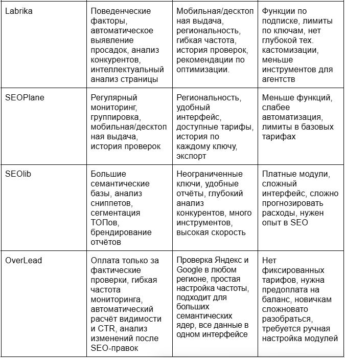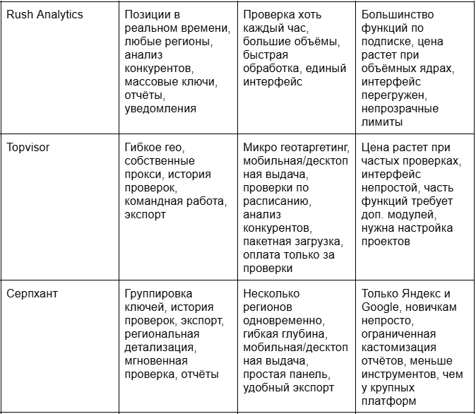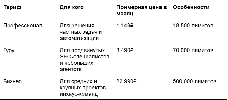 — Меньше инструментов для крупных SEO‑агентств по сравнению с нишевыми сервисами.