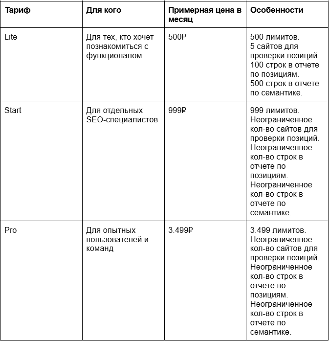 — Проверка позиций входит только в платные тарифы (но есть бесплатный инструмент для разовой проверки позиций).