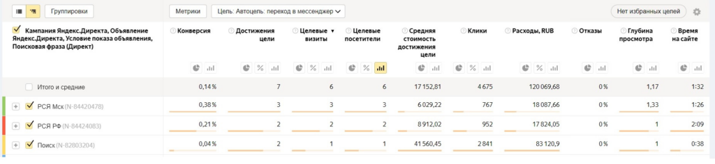 Как видно из расчётов, выгодная стоимость привлечения клиента равна 160 рублей, а выгодная цена конверсии по цели — 16 рублей. Это те значения, к которым нужно стремиться.
