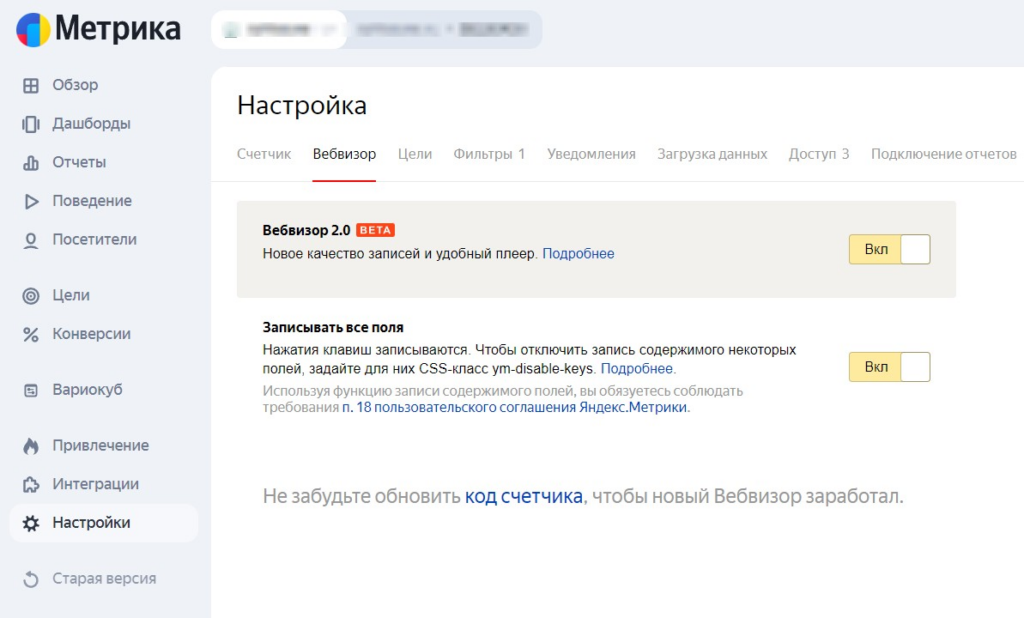 Вебвизор — инструмент Метрики, который записывает действия пользователя на сайте: как он скроллил страницы, на какие кнопки кликал, как заполнял формы. Проверьте в настройках, что Вебвизор активен.