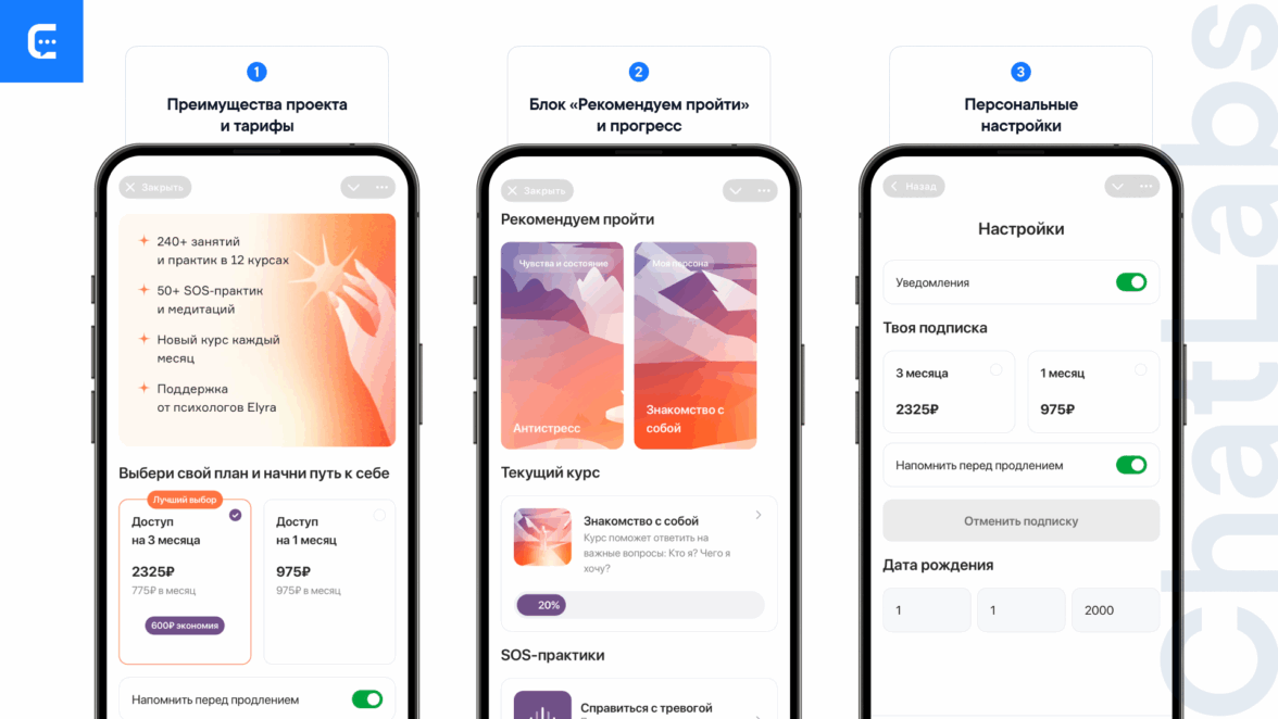 Для мини-приложения психологических практик Элира выбрали два уровня подписки: