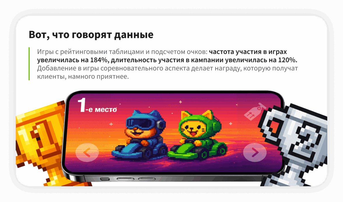 Узнайте, как геймификация вовлекает и удерживает внимание покупателей, а также как от этого выигрывает бизнес. Подробности о работающих игровых элементах — в нашем новом материале.