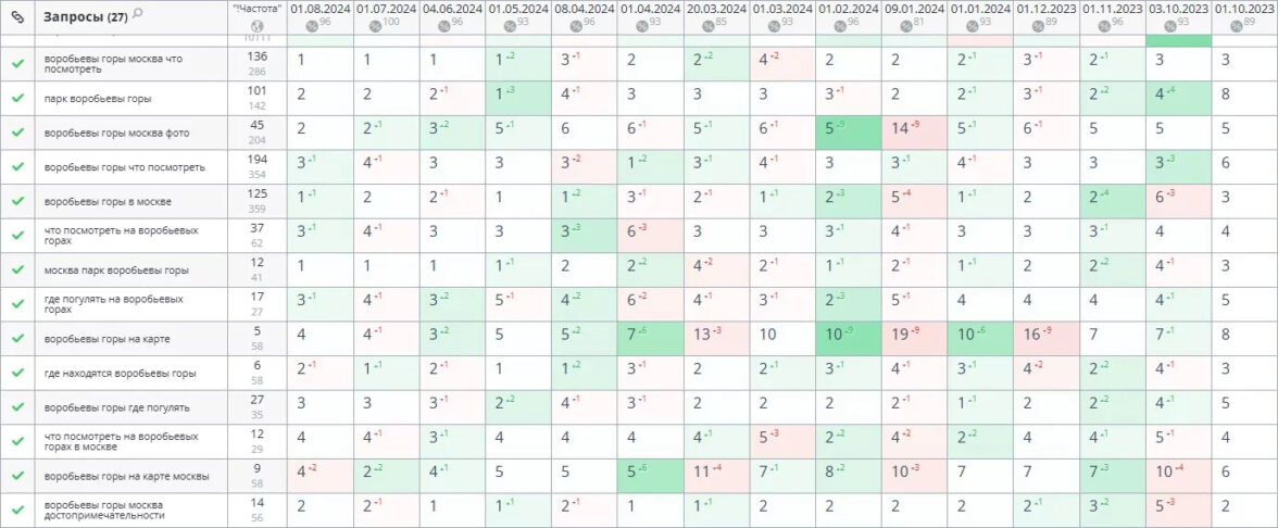 Следующий этап ― подобрать главные ключи к темам, проанализировать их частотность и конкурентность. Мы это делаем тоже через Keys.so или Wordstat.