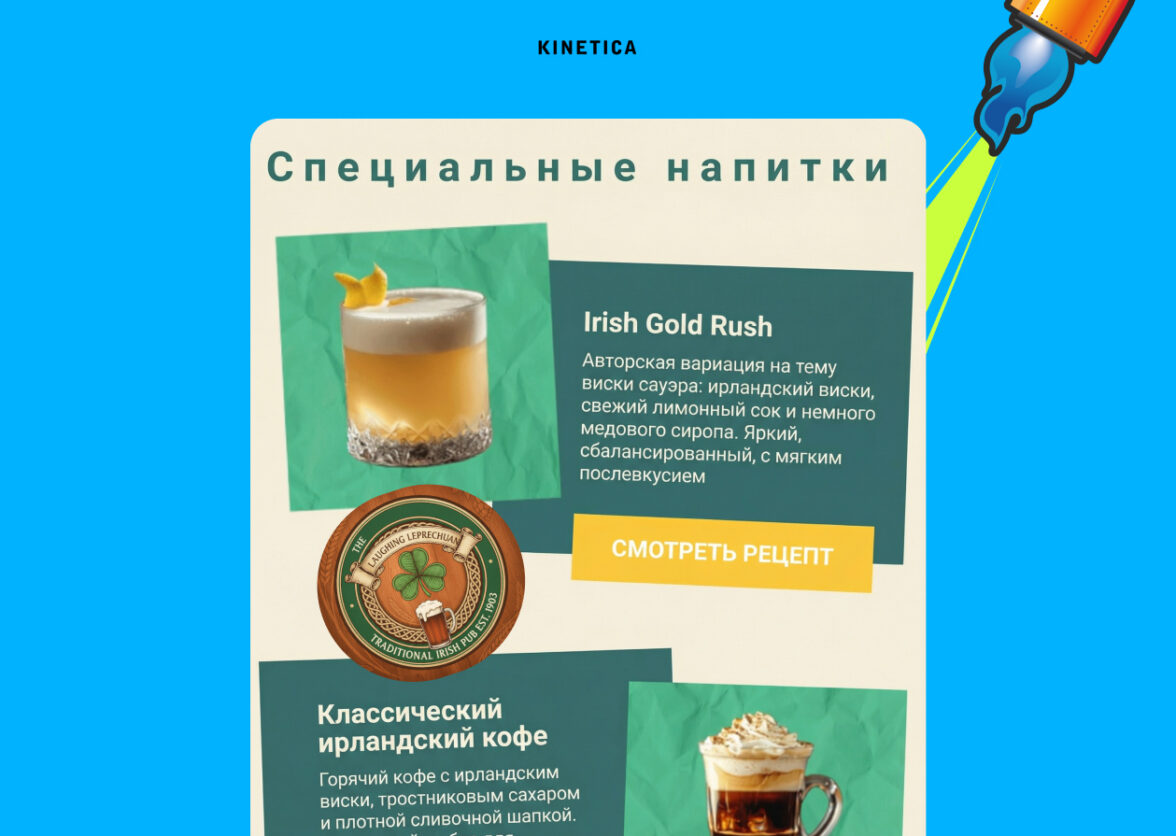 В праздник можно прислать что-то полезное: например, московский Irish Pub предлагает приготовить коктейли