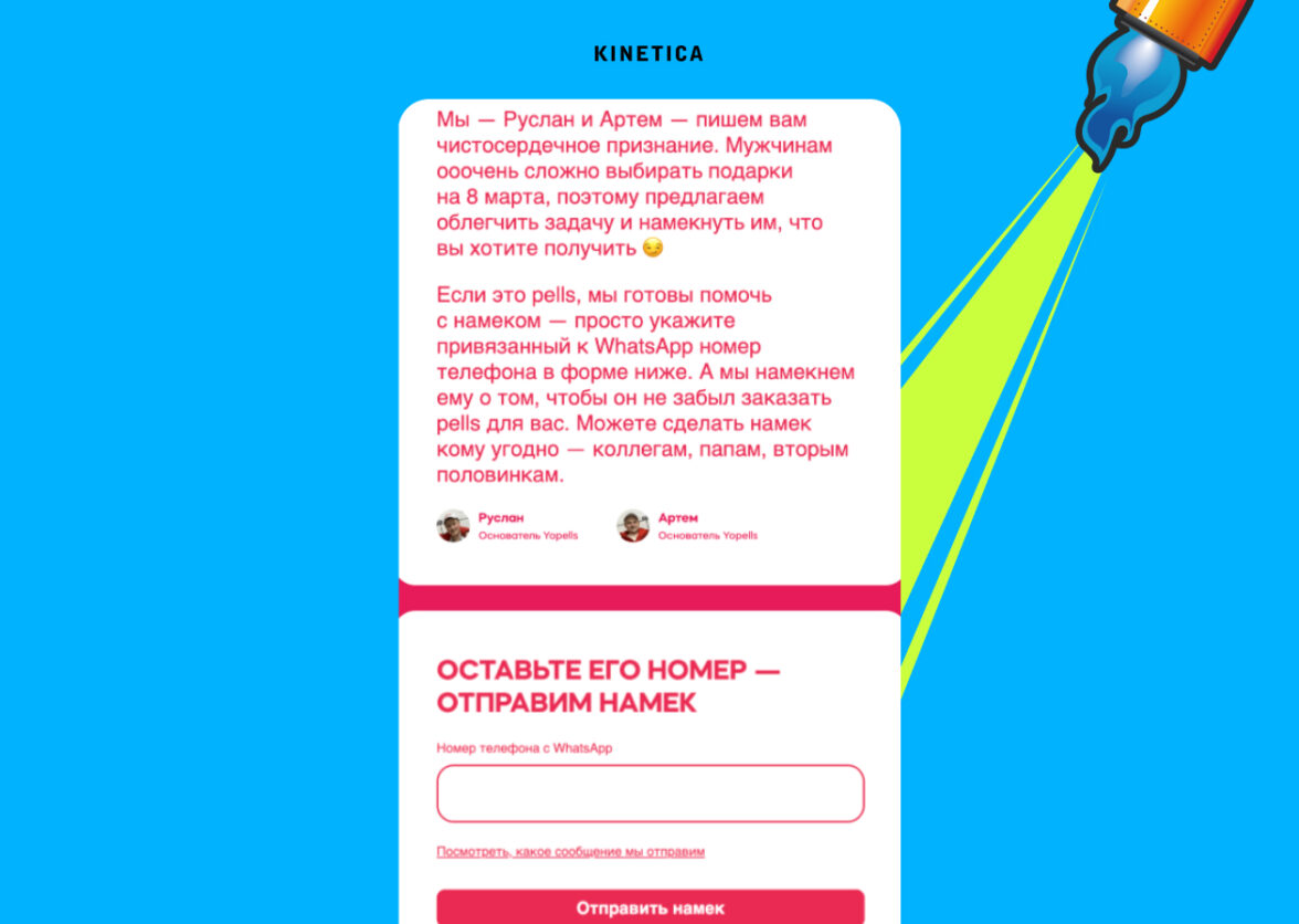 Инструменты: вишлист-механика, «отправь намек» через WhatsApp, форма с ссылкой на конкретный товар.
