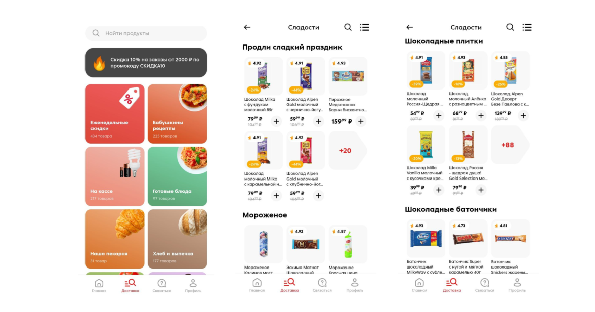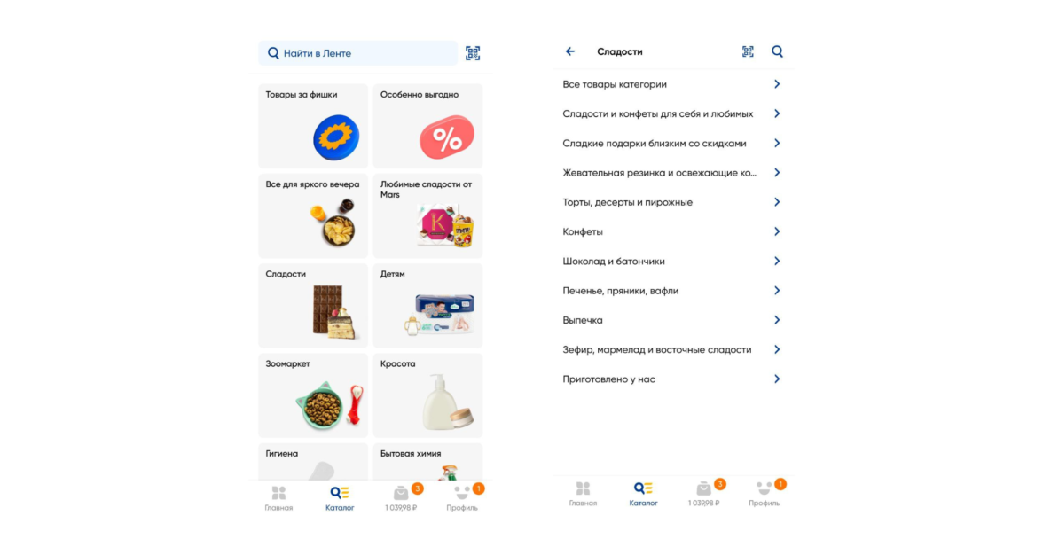 Удобство поиска и когнитивная нагрузка. В Ленте Онлайн тоже может быть трудно выбрать нужную категорию. Если пользователь захочет купить шоколадные конфеты, ему придется решить, какую категорию выбрать: «Сладости и конфеты для себя и любимых», «Сладкие подарки близким» или «Конфеты». Лишние клики и длительный поиск может заставить пользователей выйти из приложения и отложить покупки.