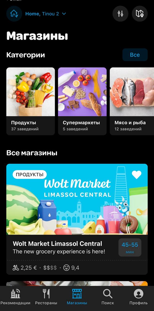Из минусов — слишком много текста в каталогах продавцов. Вероятно, Wolt не контролируют этот момент. Здесь бы очень помогли гайды.