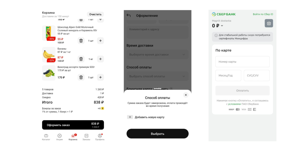 Решение задачи. Оформить заказ в Лента Онлайн несложно. Текст не мешает этому процессу. А на экране, где нужно вводить банковские данные успокаивает, чтобы пользователи не переживали за сохранность данных.