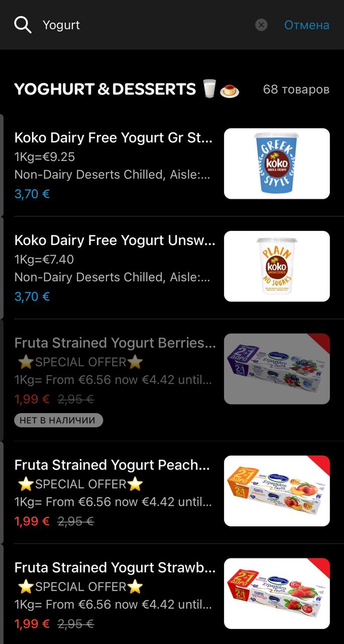 А иногда пользовательский опыт превращается в кошмар. Например, аптека выгрузила свой каталог в кипрский Wolt на греческом. Всё бы ничего, но большая часть пользователей приложения — экспаты, которые не знают греческого. Чтобы найти необходимый продукт, придется использовать переводчик. Но будет ли кто-то так сильно заморачиваться?