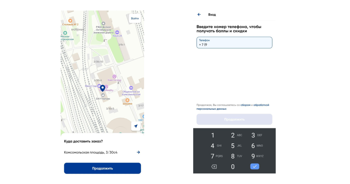 Регистрация. Начать пользоваться Лентой Онлайн просто. Приложение сразу спрашивает, куда доставить заказ, а на этапе оформления просит ввести номер телефона. Важно, что оставляя номер пользователи должны понимать, зачем они это делают. Например, по этому номеру они смогут заходить в приложение, смотреть чеки и получать скидки. Такой подсказки не хватает на экране. Сейчас текст скорее путает и сообщает, что номер нужен, чтобы пользователи могли получать баллы и скидки.