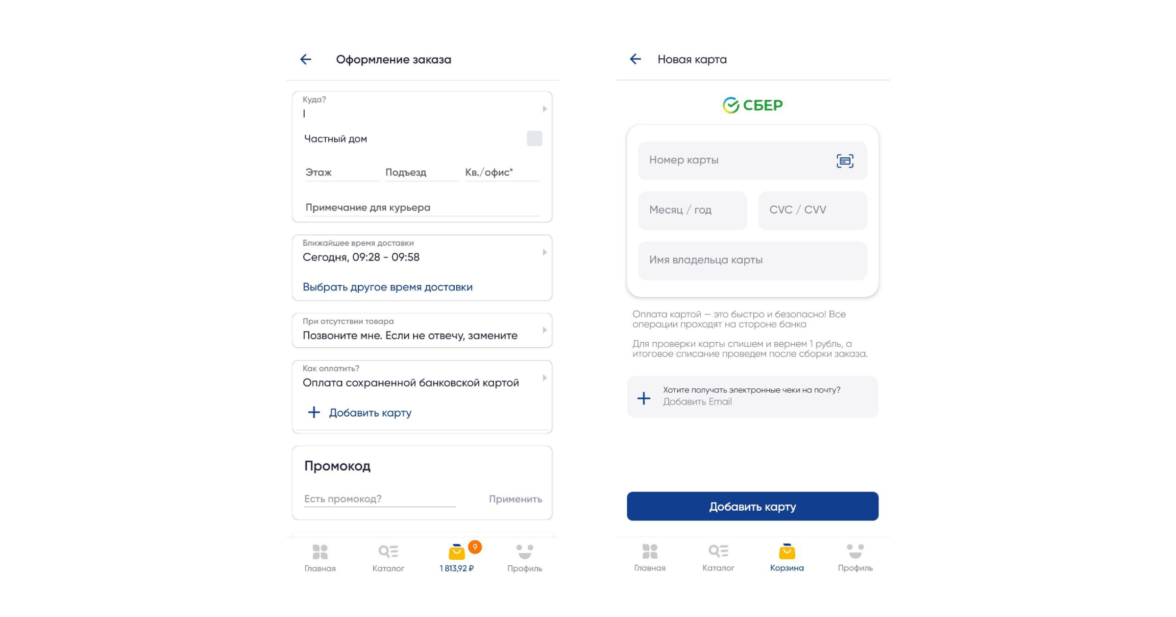 Связность и единообразие текстов. Над текстами приложения СберМаркета работает команда UX-редакторов, и это заметно. Тексты простые, понятные и выдержаны в одном тоне.